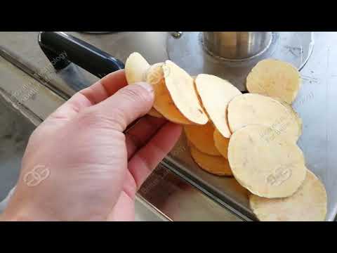 This is a test video about our potato chips cutting machine. In the video,you can see that it is easy to operate, just need to put the potato into the machine,and the potato chips can be cut efficiently.and the thickness of potato can be adjusted by customer's requirements.We also have potatp washing and peeling machine,potato chips frying machine,etc. If you are intereseted in our machine,please contact to me freely.