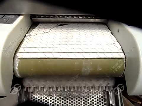 This machine is used to cut dough into uniform shape.In the video ,we can see the dough was cut into diamond shape.we also have different shape,like triangle,rhombus,rectangle,etc.We also supply chin chin processing line for you.If you are interested in the machine,please contact to me freely.